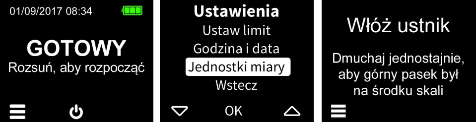 | JEDNOSTKI MIARY | mg/l (zawartość alkoholu w wydychanym powietrzu), ‰BAC (alkohol we krwi) |