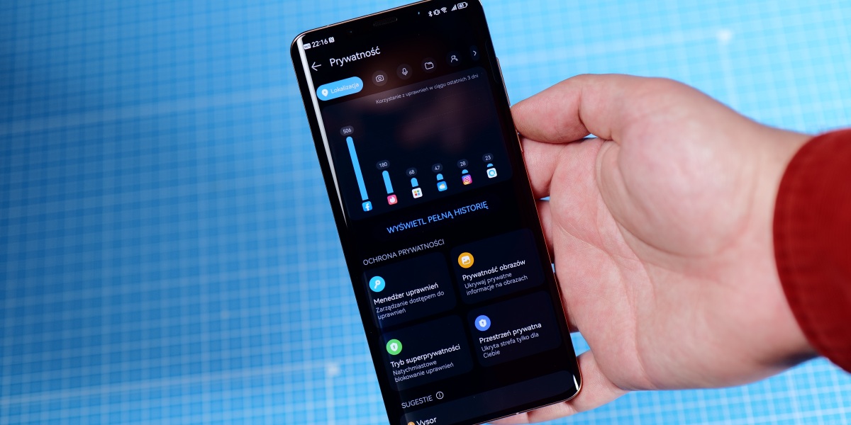 Wrażliwe dane możesz ukryć przed widokiem osób trzecich. Zabezpieczenie może stanowić czytnik linii papilarnych. W centrum prywatności ustalisz, jak wykorzystywane są uprawnienia aplikacji oraz zablokujesz dostęp niepożądanym programom. Ponadto stworzysz przestrzeń osobistą.