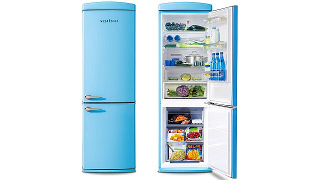 Vestfrost VR-FB373-2E1BU to bezszronowa lodówka retro w przyjemnej kolorystyce.
