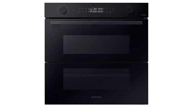 Samsung NV7B4545VAK Dual Cook Flex oferuje klasę energetyczną A+, prowadnice teleskopowe, wyświetlacz, oświetlenie, pojemność 76 l.