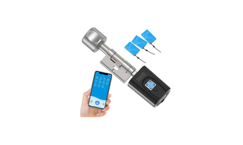 Wbudowany czytnik linii papilarnych charakteryzuje się szybkim działaniem i automatycznym uczeniem się powtarzanych odcisków. System poprawia swoją skuteczność wraz z czasem użytkowania, co zwiększa wygodę codziennego korzystania. W aplikacji można nadawać tymczasowe kody dostępu oraz sprawdzać historię otwarć, co poprawia kontrolę nad bezpieczeństwem domu.