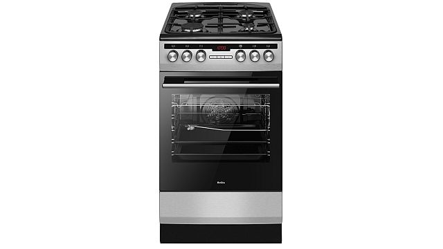 Amica 58GET2.43HZpTaDFAi(Xsx) oferuje szerokość 50 cm, prowadnice drabinkowe, rożen obrotowy, klasę energetyczną A, czyszczenie parowe, zapalacz gazu.