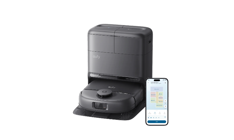 Stacja Omni 5 w 1 zapewniająca wygodę obsługi: usprawnij rutynowe czynności dzięki automatycznemu opróżnianiu zbiornika na kurz, myciu rolki mopa, uzupełnianiu wody, suszeniu gorącym powietrzem i odprowadzaniu ścieków.