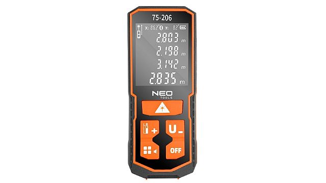 Dalmierz laserowy 75-206 marki NEO jest urządzeniem służącym do pomiaru odległości, pola powierzchni oraz objętości. Funkcje dalmierza pozwalają również na pomiary pośrednie (funkcja Pitagorasa), pomiary ciągłe, dodawanie i odejmowanie, pomiary: maksymalny i minimalny. Przydatny w budownictwie, geodezji, przy projektach technicznych, a także w domu.