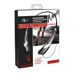 SŁUCHAWKI BT Z MIKROFONEM ART AP-B21 czarne/srebrne (RING) sport - Nowocześnie wyglądający pałąk z magnetycznym mocowaniem słuchawek - Możliwość parowania z 2 urządzeniami jednocześnie