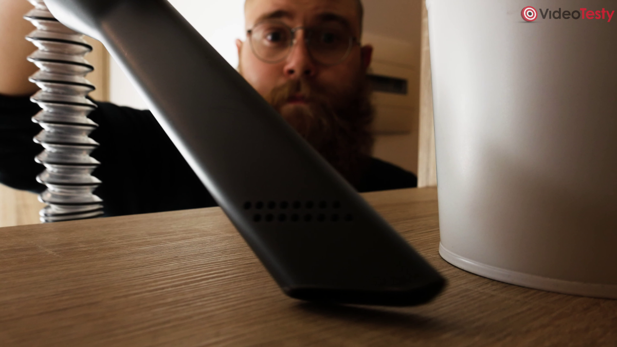 Również rura mogłaby być dopracowana pod względem regulacji wysokości. Nie ma jej. I chociaż mi się wygodnie prowadziło odkurzacz, to osoba niższa ode mnie mogłaby mieć już problem. Za to dysza szczelinowa jest super, bo dzięki dodatkowym otworom z boków nie przysysa się do odkurzanej powierzchni i wydaje się lepiej zbierać kurz z trudnodostępnych miejsc.