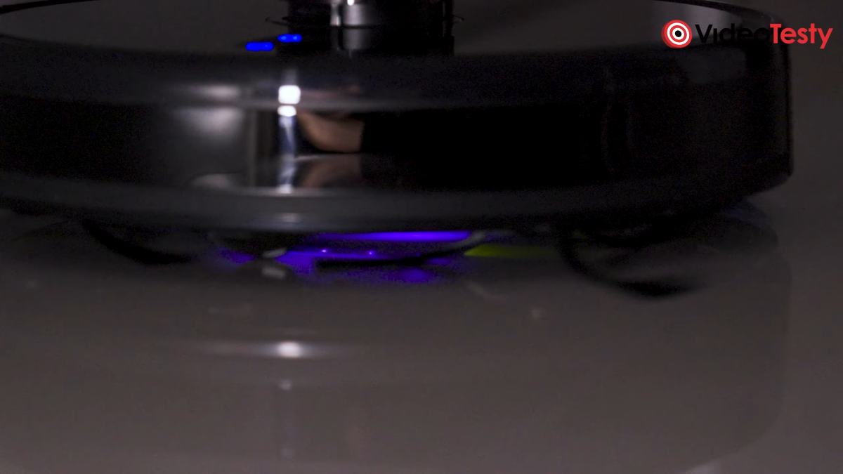 Samo w sobie jest niebezpieczne dla człowieka, ale producent zdaje sobie z tego sprawę i robot automatycznie wyłączy to podświetlenie, gdy tylko wyczuje, że jest obracany do góry kołami. UV włączysz wprost z aplikacji, dołączając go do standardowego trybu pracy. Możesz też skorzystać z niego w trybie sterylizacji, w którym robot skupi się na danym obszarze, zabijając obecne na nim bakterie i roztocza.