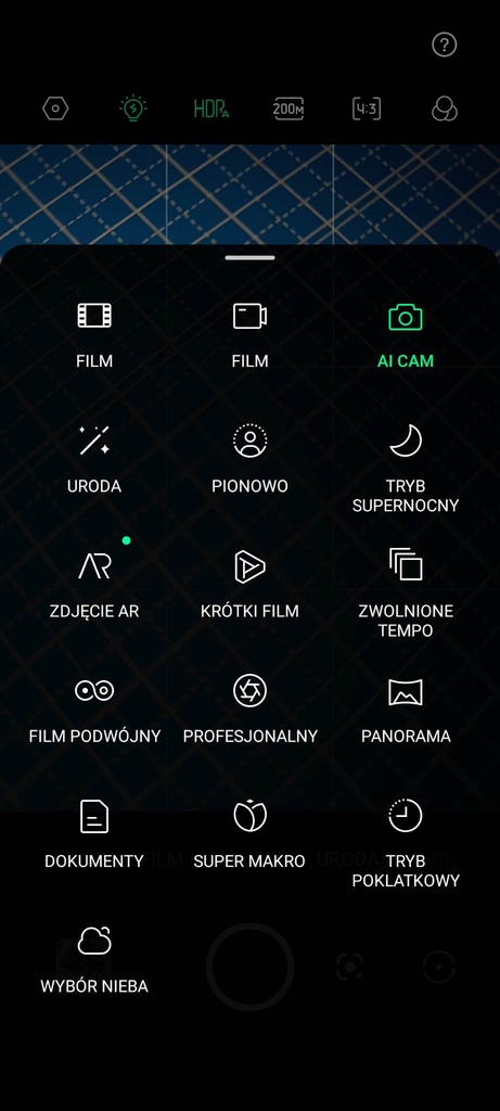 Aplikacja aparatu od Infinix wykorzystuje tryb sztucznej inteligencji i nie da się z tego ustawienia zrezygnować. Ma za to aż trzy tryby nagrywania video - poza standardowym znajdziemy tu krótkie video oraz vlogowe, gotowe zbitki montażowe z dopasowaną do nich muzyką. Nie znajdziemy za to trybu profesjonalnego do nagrywania video. Część opcji nadal myli swoimi nazwami - znajdziemy dwa tryby "Film" oraz tryb "Pionowo" czy "Wybór nieba".
