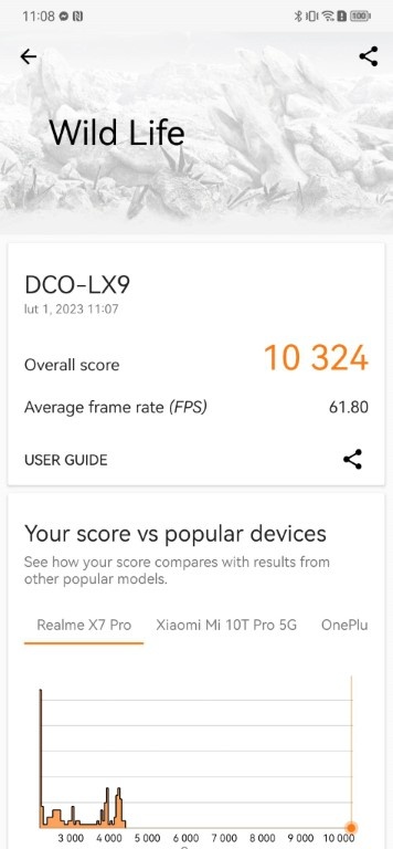 | Antutu Benchmark dla Huawei Mate 50 Pro - 863613 | 3D Mark Wild Life Extreme - 2737 | 3D Mark Wild Life - 10324 | Geekbench 4 - 5585/ 17282 | Geekbench 5 - 1002/3936 |